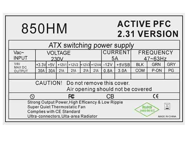 Υποστηρίζει το τρέχον πρότυπο ATX 2.31Διόρθωση συντελεστή ισχύος (ενεργό PFC)