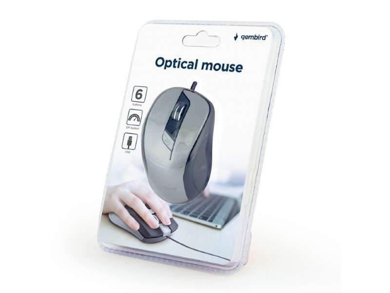 🖱️ Gembird MUS-6B-01-BG – Ενσύρματο Οπτικό Ποντίκι 6 Κουμπιών, 1600 DPI, Μαύρο/Γκρι