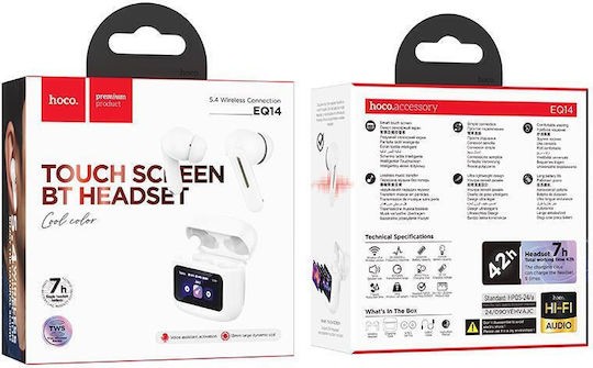 🎧✨ Hoco EQ14 Cool Color – Ασύρματα Bluetooth Ακουστικά TWS με Θήκη & Οθόνη Αφής – Λευκό