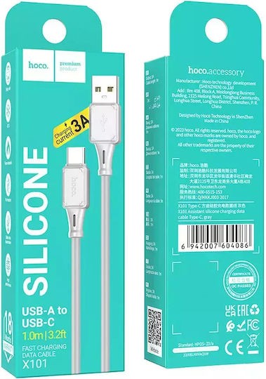 🔌 Hoco X101 USB-A σε USB-C – Καλώδιο Φόρτισης & Δεδομένων 60W, 1m, Γκρι