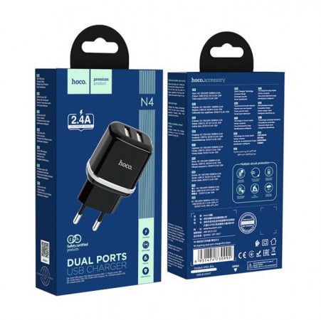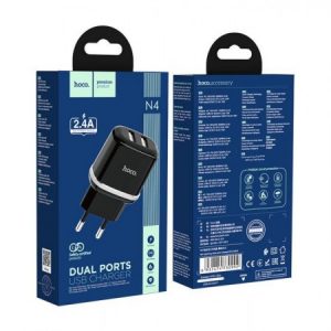 HOCO travel Charger – 12W (2.4A) 2x USB plug N4 black