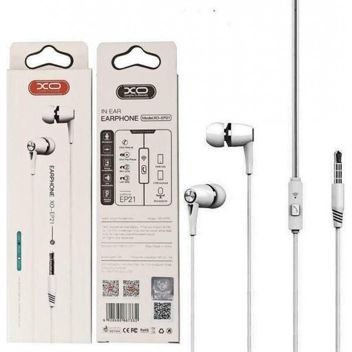 🎧✨ XO EP21 – Ενσύρματα In-Ear Ακουστικά με Μικρόφωνο – 3.5mm – Λευκό